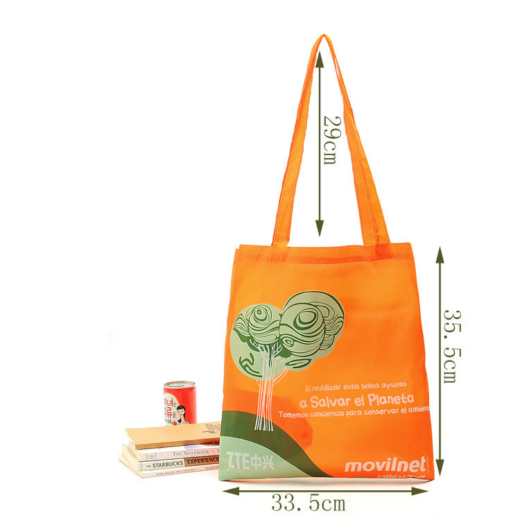 Made from lightweight nylon, this reusable tote folds compactly for effortless carrying. It showcases vivid digital prints with sharp, vibrant colors and patterns. Designed to hold heavy groceries safely, it includes a spacious gusset for added capacity. Measuring 33.5 cm in length, 35.5 cm in height, and 29 cm strap height, it folds down to a neat 11 x 4 cm. Customize it with your logo or artwork to suit promotional needs or personal branding.